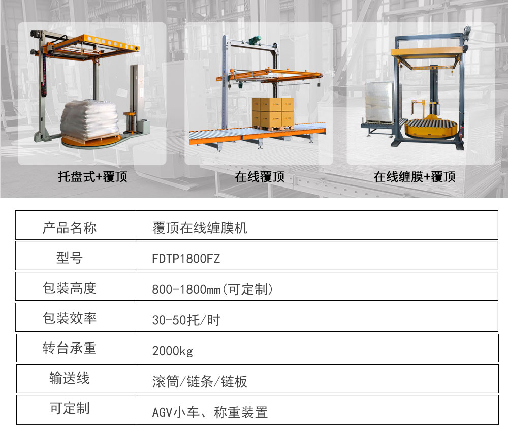 覆頂在線纏膜機 FDTP1800FZ以人為本、客戶至上、創造精品